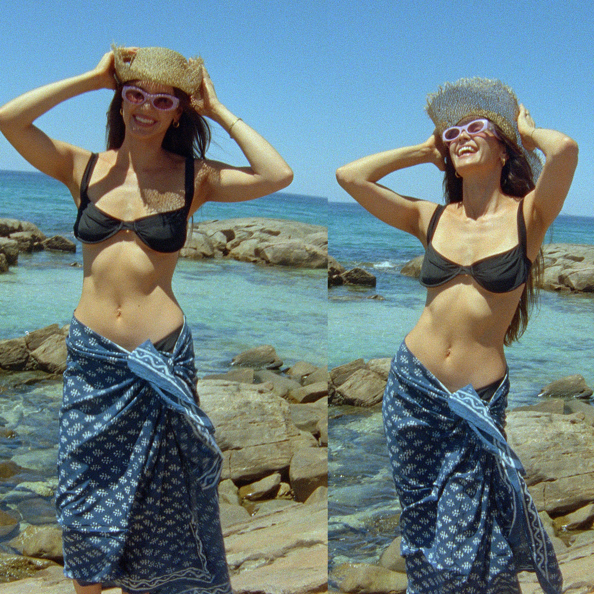 • Care: Machine wash cold. For optimal care, hand wash and hang to dry. The Coral sarong in particular may release blue colour when washed or first wet. Please pre wash separately and with care to preserve your piece and protect other clothing.