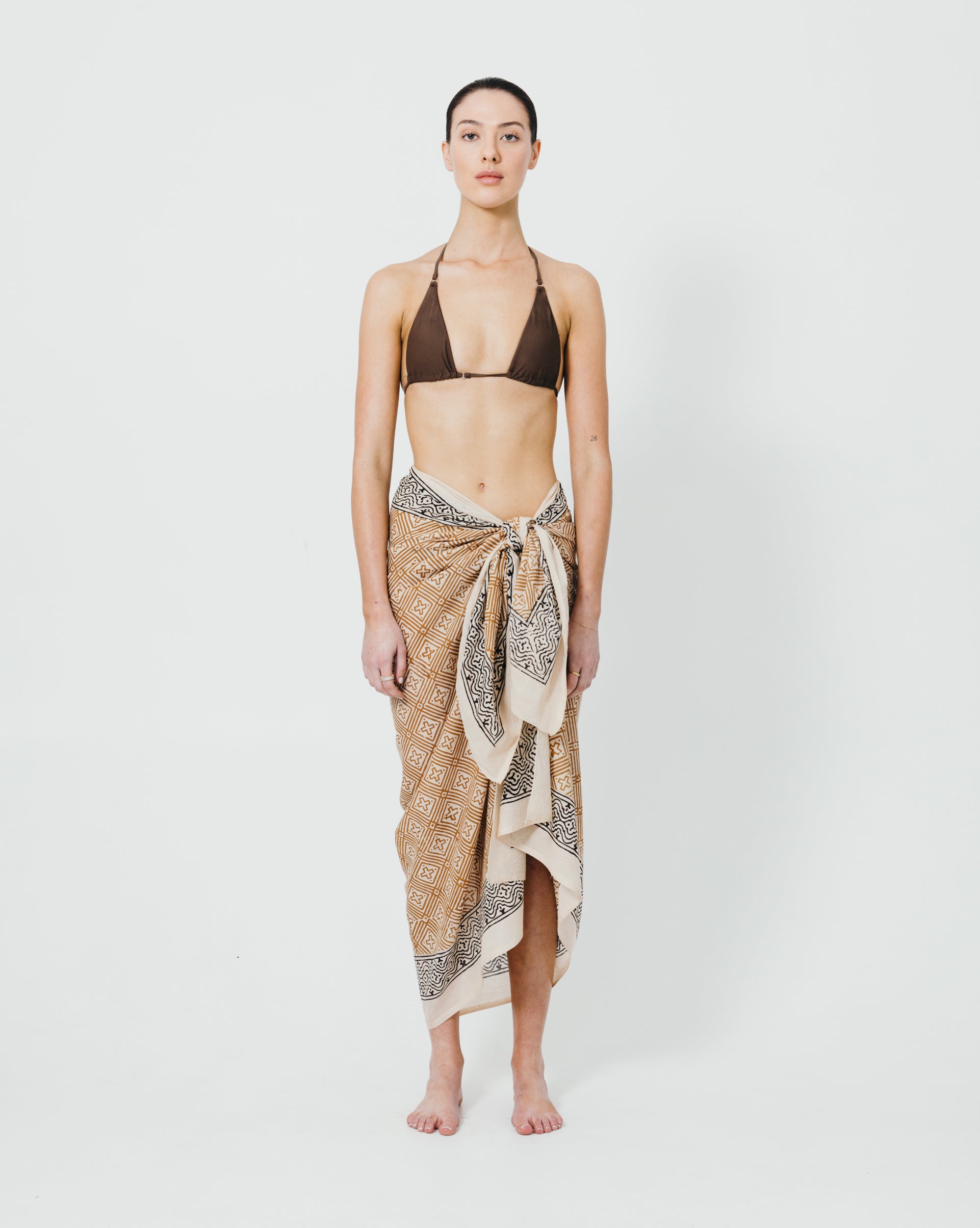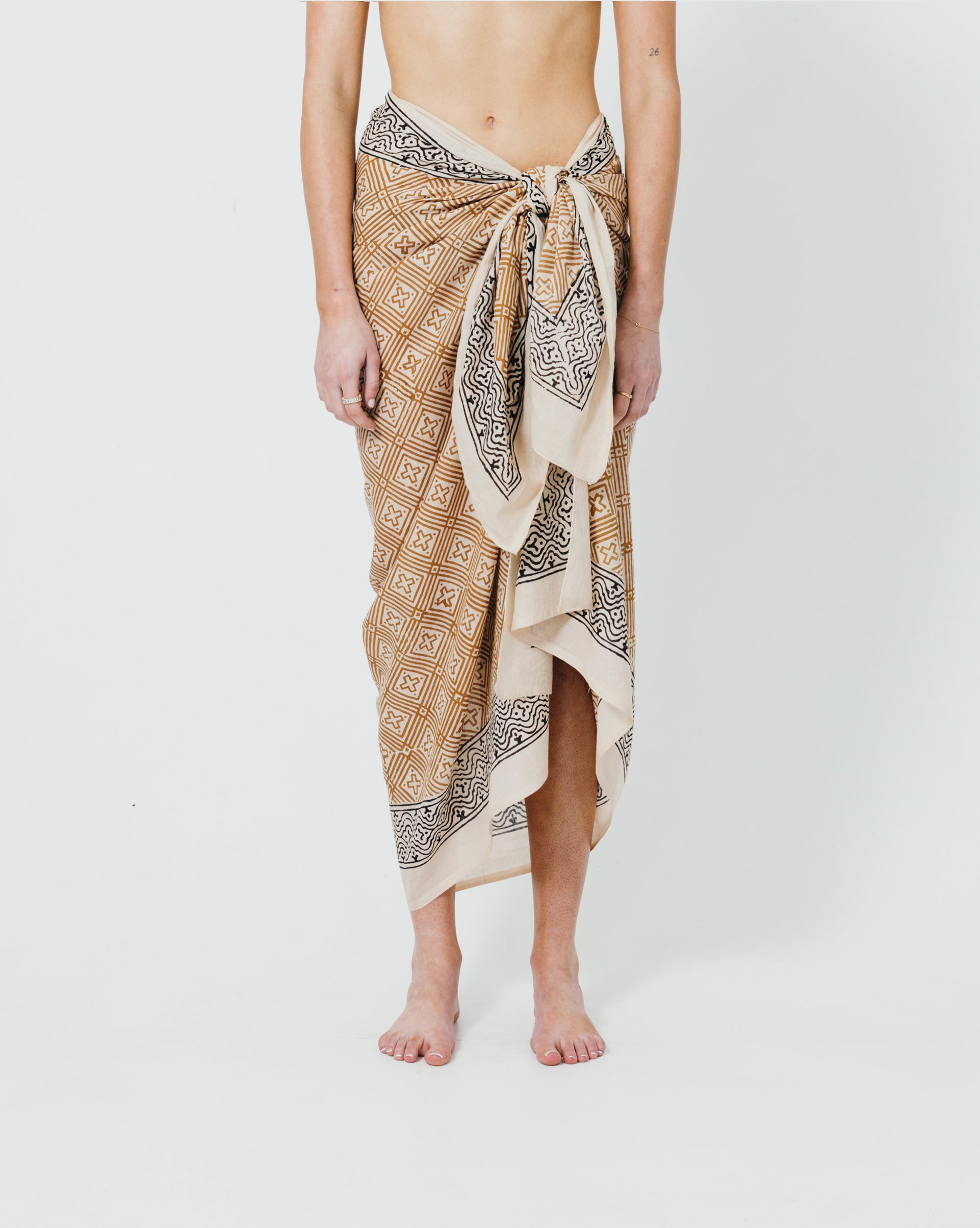 From the Kerala Collection, The Destiny Sarong is ethically hand printed on 100% cotton and carefully crafted by skilled artisans in India.