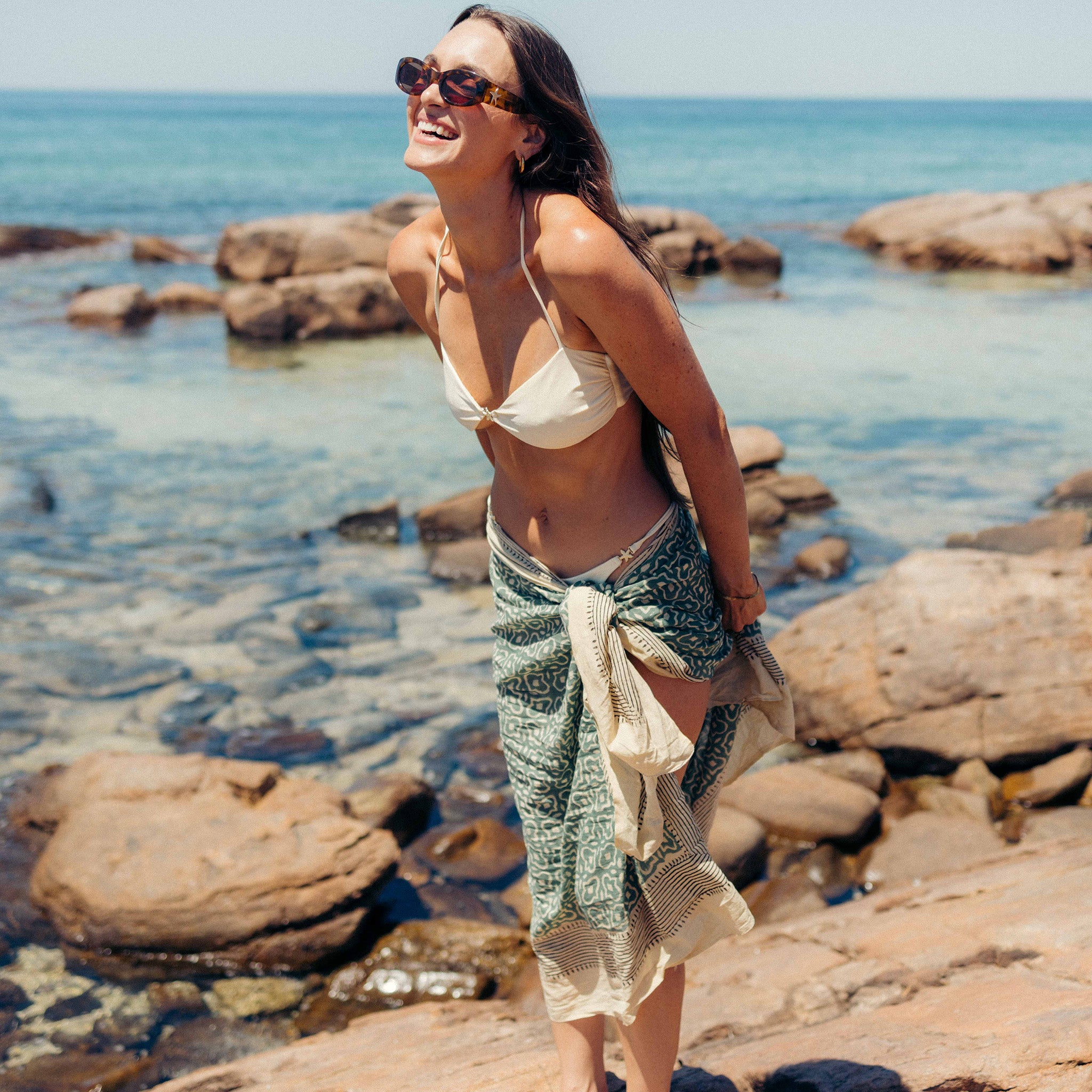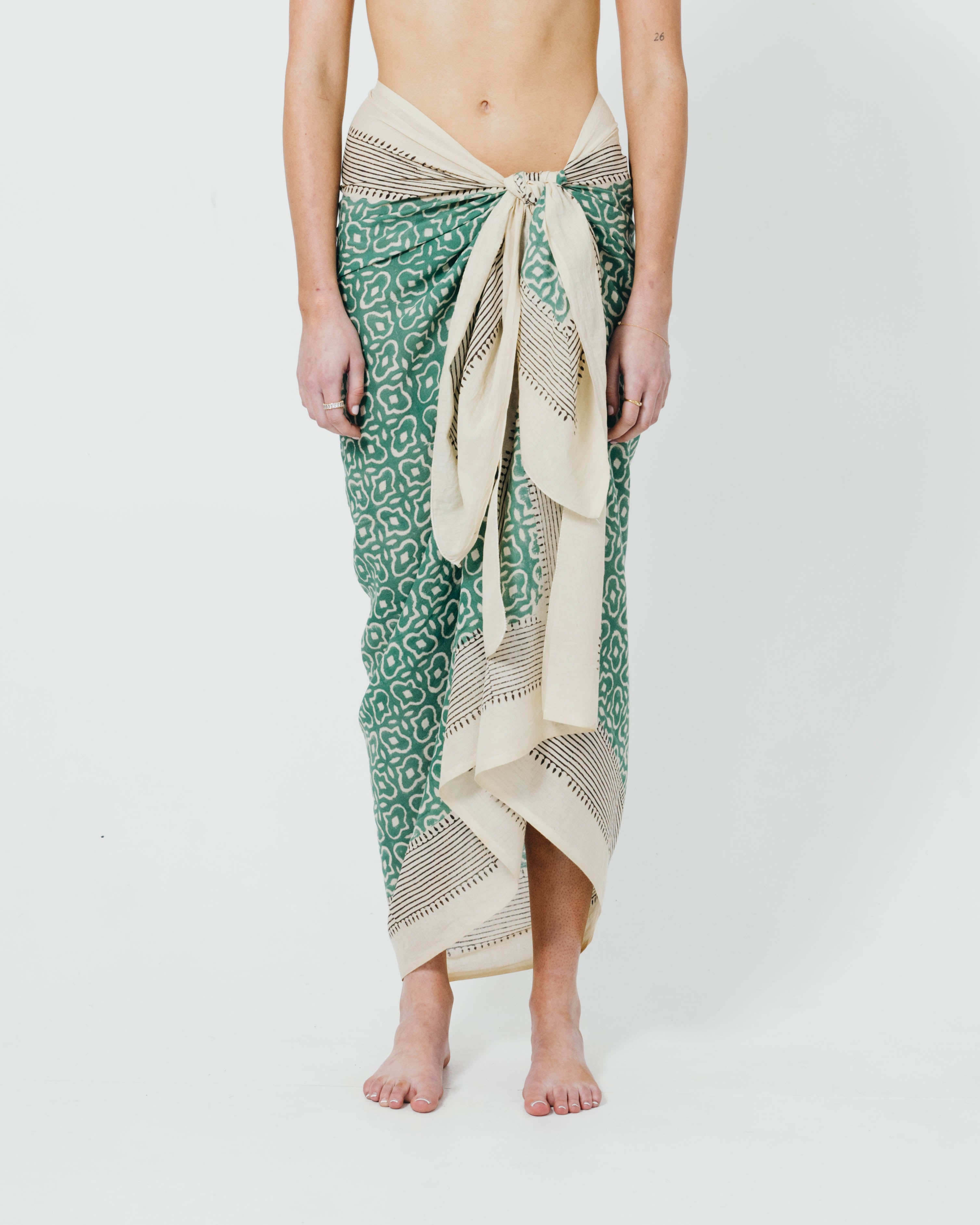 Please Note: The shade of green in the Seahorse sarong is deeper than the green in our product images. Due to the handcrafted nature of our fabric printing process, slight variations in pattern may occur, adding to the unique character of each piece.